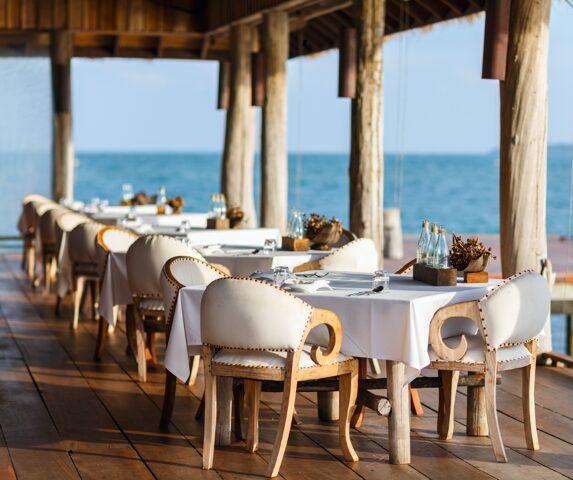 Se il tuo locale non ha un dehors, puoi comunque dare un tocco di estate con elementi decorativi di varia natura: ad esempio sostituisci i quadri con soggetti nuovi, che richiamano il mare; decora i tavoli con centritavola a tema o con fiori freschi; punta su tessuti leggeri (come lino o cotone) per tendaggi e tovaglie; crea una playlist estiva con un genere che si addica allo stile del tuo locale.